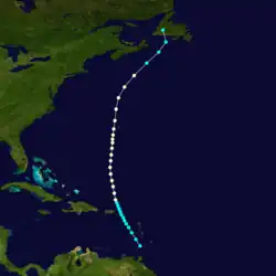 - ^ This hurricane caused an estimated $10 million (2009 USD) in damage throughout Atlantic Canada.[8]
