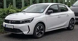 Corsa | 1982 | 2019 | 2023 | B-segment/subcompact hatchback. Available in an electric version called Corsa-e. Also marketed as the Vauxhall Corsa in the UK. |