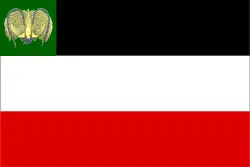 1899-1918 | Colonial Flag of The German Empire | A tricolour, made of three equal horizontal bands coloured black (top), white, and red (bottom) with The Reichsadler in the center. |
