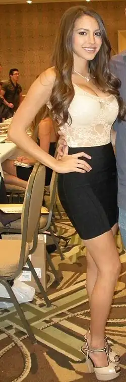 Pamela Horton (born May 4, 1988)[10] is actress and commentator and the Playboy Playmate of the Month for October 2012. Her centerfold was photographed by Arny Freytag. Horton is heavily into video and online games such as World of Warcraft. Since her pictorial, she has ventured into game reviews and commentary as well as game development.[11] In October 2014 for the release of Bayonetta 2, Nintendo partnered with Playboy to set a photo shoot with Horton cosplaying Bayonetta.[12]