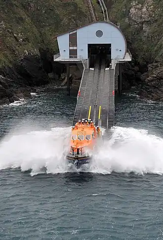 - Launchway – an ILB is pushed into the water on a carriage by hand