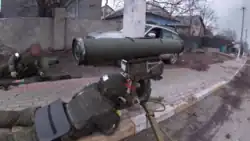 Soldier of the Ukrainian 3rd Tank Brigade showing a Mistral short range air defense system provided by France.