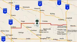 The western terminus of Hwy 708 at Hwy 35 Francis