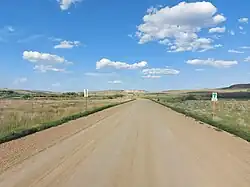 Highway 797 runs from Frenchman Butte, taking over from the Frenchman Butte Access Road, to Highway 17 at the Alberta border. The highway passes near Fort Pitt, and the community of Harlan is accessible from the highway. It is about 30 kilometres (19 mi) long.[82]
