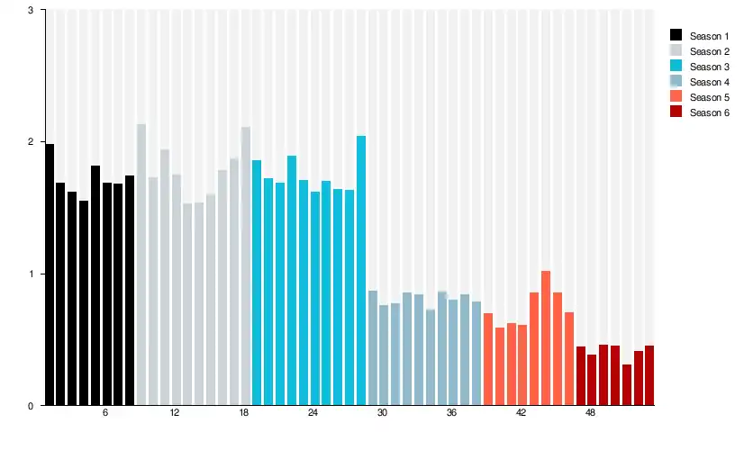- ^ Porter, Rick (June 14, 2016). "Sunday cable ratings: 'Game of Thrones' and 'Silicon Valley' hold steady". TV by the Numbers. Archived from the original on June 15, 2016. Retrieved June 14, 2016.