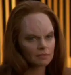 Seska first appears in the episode "Parallax" as a Bajoran crewmember absorbed from the Maquis ship in the episode "Caretaker". In the episode "State of Flux", she is revealed to be a Cardassian undercover agent, who had infiltrated the Maquis cell. During her time with the Maquis, Seska had a love affair with her commander, former Starfleet officer Chakotay and befriended the half-Klingon, half-human B'Elanna Torres. Seska's former relationship with Chakotay would later prove key to her plan to capture Voyager in the double-episode story "Basics".