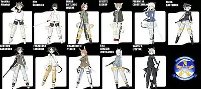 The characters appearing in the ongoing light novel are part of the Suomus Independent Volunteer Aerial Squadron (スオムス義勇独立飛行中隊, Suomusu Giyū Dokuritsu Hikō Chūtai).