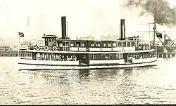 | Telephone | 1878 | Wooden paddle steamer. Built by H. Perdriau. 40-hp compound diagonal steam engine by Atlas Engineering Co. | 85 tons | 31.9 m | - | ||||