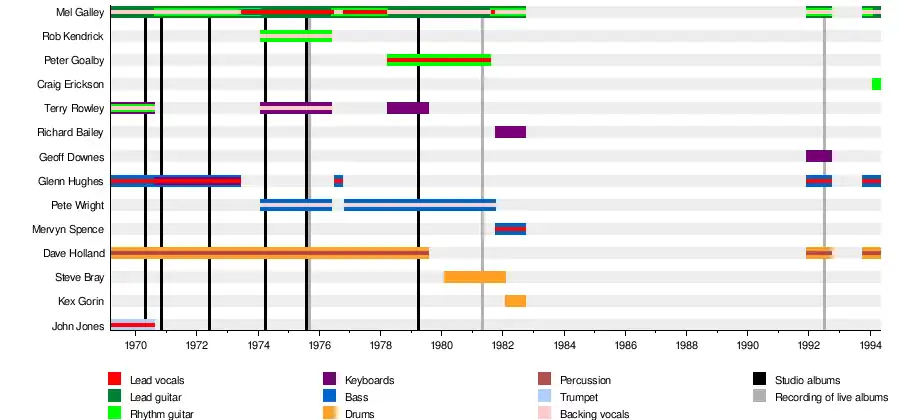 {{cite AV media notes}}: CS1 maint: others in cite AV media (notes) (link) - ^ "Chat with Mel Galley Transcript - January 21st, 2007". Glenn Hughes. 21 January 2007. Retrieved 12 September 2017.