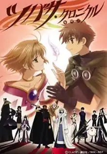 Tsubasa: Reservoir Chronicle, a manga by Clamp, has been adapted into four different anime versions between 2005 and 2009, including a two-season anime television series, an anime film, and two original video animation (OVA) series with screenplay provided by Nanase Ohkawa and music composed by Yuki Kajiura. Bee Train adapted the manga series into a fifty-two-episode anime entitled Tsubasa Chronicle directed by Kōichi Mashimo with Hiroshi Morioka joining on as co-director for season two. Hiroyuki Kawasaki scripted both seasons.[1] Production I.G adapted the manga series into both an anime film entitled Tsubasa Chronicle the Movie: The Princess of the Country of Birdcages directed by Itsuro Kawasaki and two OVA adaptations directed by Shunsuke Tada entitled Tsubasa Tokyo Revelations and Tsubasa Shunraiki. Set in a fictional universe involving alternative realities, the story follows a group of five travellers—Syaoran, Sakura, Kurogane, Fai D. Flourite, and Mokona—as they search for fragments of Sakura's memory that take the form of feathers of great power and without which, Sakura will die. The series features much crossover with its sister series xxxHolic, another manga by Clamp.