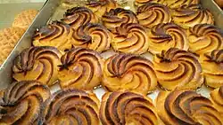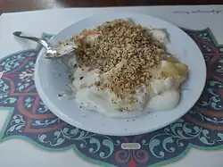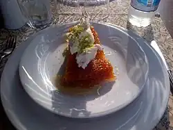 | Soğuk baklava | Phyllo pastry, dairy | Thin layers of phyllo brushed with clarified butter, poured with a type of cold sharbat syrup consists of milk and sugar and served with cocoa or grated chocolate on top. | |
