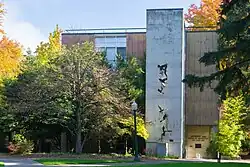 Named for university president Prince Lucien Campbell, PLC is home to many departments and a large auditorium.[n 30] The Oregon Companion described PLC as "...a pugnaciously ugly eight-story semi-skyscraper office building" and adds, "He deserved better."[n 31] Part of the Memorial Quad |