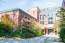 University of Oregon real estate includes buildings in a variety of architectural styles and eras. Many buildings on the main campus were designed by Ellis F. Lawrence, who joined the university in 1914 as campus planner, but by 1915 he had founded the School of Architecture and had become chief architect of the university. Lawrence also held a commission to design all buildings on campus as long as he remained in charge of the School of Architecture. This commission was a source of extra income for Lawrence, and he designed buildings until his death in 1946.[1] Some of the Lawrence buildings are listed on the National Register of Historic Places. Others are not themselves listed but are included in NRHP site surveys. The Memorial Quadrangle, for example, contains buildings listed as contributing resources in the site survey for the Knight Library.[2] These buildings are Condon Hall, Chapman Hall, and the Jordan Schnitzer Museum of Art, although the museum is also separately listed.[3] The Women's Memorial Quadrangle is listed on the NRHP, and it contains three more Lawrence buildings which are contributing resources, Gerlinger Hall, Hendricks Hall, and Susan Campbell Hall.[4]