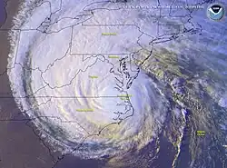 - ^ David Roth; Hugh Cobb. "Virginia Tropical Cyclone Climatology". Virginia Hurricane History. Weather Prediction Center. Retrieved February 9, 2025.