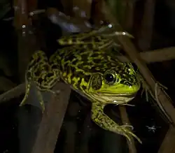 | Green frog | Lithobates clamitans | Least concern | Throughout the state, excluding southwestern prairies | 2-4 inches (5–10 cm) |