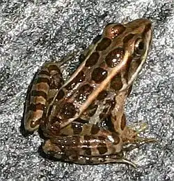 | Northern leopard frog | Lithobates pipiens | Least concern | Throughout the state | 2-3.5 inches (5–9 cm) |