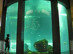 Aquariums are facilities where animals are confined within tanks and displayed to the public, and in which they may also be bred. Such facilities include public aquariums, oceanariums, marine mammal parks, and dolphinariums.
