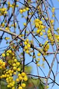| Loranthaceae (showy-mistletoe family) | Loranthus, from Latin for "strap" and Greek for "flowers"[106][107] | 78 genera, widespread[106][108] | Parasitic evergreen vines, trees and shrubs[42][106] | Santalales[106] | ![]() ![]() Loranthus europaeus |