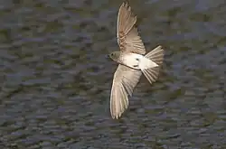 Swifts are small birds which spend the majority of their lives flying. These birds have very short legs and never settle voluntarily on the ground, perching instead only on vertical surfaces. Many swifts have long swept-back wings which resemble a crescent or boomerang.