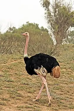 The ostrich is a flightless bird native to Africa. It is the largest living species of bird. It is distinctive in its appearance, with a long neck and legs and the ability to run at high speeds.