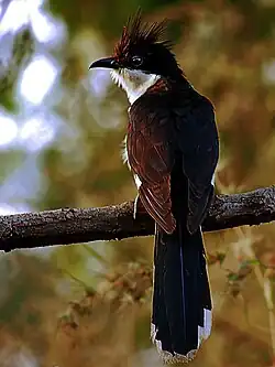 35 bird species are confirmed as endemic,[1] the latest addition being the Sri Lanka shama, which previously considered as a subspecies of the white-rumped shama. The other resident species are also found in the nearby Indian mainland, but over 80 have developed distinct Sri Lankan races. Some of these races are very different in their plumage characteristics from the related forms in India. 26 species are globally threatened.