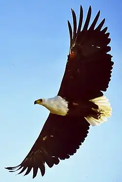Bustards are large terrestrial birds mainly associated with dry open country and steppes in the Old World. They are omnivorous and nest on the ground. They walk steadily on strong legs and big toes, pecking for food as they go. They have long broad wings with "fingered" wingtips and striking patterns in flight. Many have interesting mating displays.