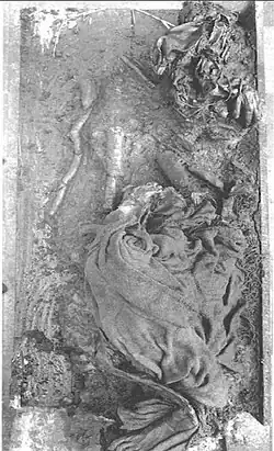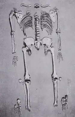 The body of a bearded man was found lying face down on 9 or 10 June 1903. No clothing was found on the body, although stones and twigs were nearby.[65] The remains were destroyed during World War II, but were dated after a piece of his hair was found. |
