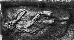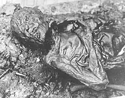 The first bog body to be photographed before being moved from where it was discovered.[26][27] |
