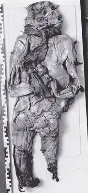 The boy is believed to have died between the ages of seven and ten years of age.[62] The boy had been bound and stabbed several times, on his throat and arm.[39][63] The child had an infected socket at the top of his femur and would not have been able to walk without assistance.[64] The boy's body is preserved in a formalin solution and is not displayed. | |