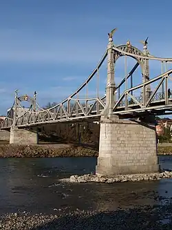 | 14 | Salzach Bridge (Laufen–Oberndorf) | Salzachbrücke (Laufen–Oberndorf) | Cultural heritage | 166 m (545 ft) | Suspension Chain bridge, iron deck and pylons 49+78+39 |
