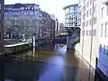 Bridges across the Este in Hamburg; only 2 km (1.2 mi) of the Este's total of 62 km (39 mi) lie within the state borders of Hamburg.