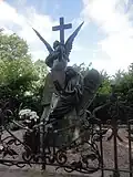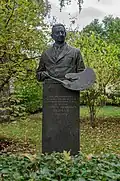 During the early Soviet period a number of monuments were stolen or destroyed. The cemetery was officially closed for burials in 1927, though they continued until 1932, and it was decided to turn it into a necropolis museum, displaying historically and artistically significant graves.[2][1] Alongside this was concept of gathering together the graves of the friends and contemporaries of Alexander Pushkin for the 1937 centenary commemorations of the poet's death. The architectural and planning department of Lensovet, the city administration, was tasked with creating a memorial park project.[2] Plans were drawn up by architects E.N. Sandler and E.K. Reimers, with further input from the city's chief architect L.A. Ilyin.[2] The Funeral Affair Trust was established to run the necropolis museum, including removing abandoned gravestones for sale as building materials.[4] The reconstruction radically altered the nature and appearance of the Tikhvin cemetery. With the intention being to create an "artists' necropolis", graves of those from other sections of society were removed. Fewer than a hundred of the original monuments were preserved.[2] Meanwhile, the remains of prominent artists, sculptors, composers and musicians were reburied in the cemetery. Among them were personal friends of Pushkin, including Konstantin Danzas, Anton Delvig, and Fyodor Matyushkin.[2]