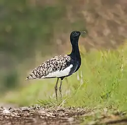 Bustards are birds in the family Otididae in the monotypic order Otidiformes. There are currently 26 extant species of bustards recognised by the International Ornithologists' Union.[1] Many species of fossil bustards are known from the Miocene onwards; however, their exact number and taxonomy are unsettled due to ongoing discoveries.[2]
