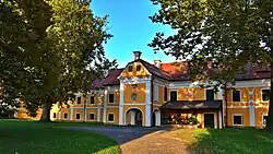 The Baroque-Classicist castle of the Pejačević family in Retfala, built in the first phase in 1801, It was built in the shape of the letter U, surrounded by a large park, which today has been completely reduced and reduced to a neglected environment. Not far from the castle, the family also built a mausoleum in 1891, in the neo-Baroque style, designed by architect Viktor Siedek, and it is considered one of the highest quality examples of neo-Baroque architecture in Croatia.[11] |