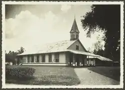 | Old Church of Watumea | Watumea, North Sulawesi | 1872 | Protestant | Indies | The church is the original wooden church building of Watumea, the first church in the city. The heritage wooden church was built in 1868 using local materials and was inaugurated on 8 December 1872. The design and construction were overseen by Hessel Rooker, a Dutch missionary. The church bell and other church appliances were imported from Germany. On 4 March 2003, the building was made a heritage building by the Ministry of Culture and Tourism.[26] | |