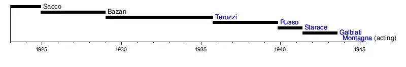 2 January 1929 | 3 October 1935 | 6 years, 274 days | National Fascist Party | [10] | |