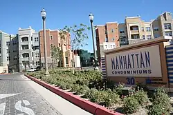 Manhattan is a 700-unit condominium property located on South Las Vegas Boulevard, south of the Las Vegas Strip.[75] It was announced by Gemstone Development in 2004,[76] and was built by Martin-Harris Construction.[77]