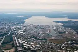 With operational depths of around 23.2 m (76 ft),[19] Elliott Bay allows year-round access for large cargo ships. The port handles containers, breakbulk, Ro-Ro, and cruise traffic, and serves as a key gateway for U.S. trade with Asia and Alaska.[23] |