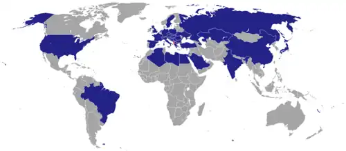- ^ a b c d e f g h i j k l m n o p q r s t u v w x y z aa ab ac ad ae af ag ah ai aj ak al am an ao ap aq ar as at au av aw ax ay az ba bb bc bd be bf bg bh bi bj bk bl bm bn bo bp bq br bs bt bu bv bw bx by bz ca cb cc cd ce cf cg ch ci cj ck cl cm cn co cp cq cr cs ct cu cv cw cx cy cz da db dc dd de df dg dh di dj dk dl dm dn "Diplomatic List Including International Organizations and other Representations to Albania" (PDF). State Protocol Department, Ministry for Europe and Foreign Affairs of Albania. 27 February 2025. Retrieved 29 July 2025.