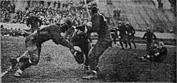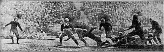 November 26 the all-time collegiate attendance record of 123,000 plus was established as Notre Dame beat USC 7–6.[1][30][39][103] Amongst those in attendance was Los Angeles mayorGeorge E. Cryer. In preparation for this game a thousand seats were added by the South Park Board to the venue, and a proclamation was issued by Chicago mayorBig Bill Thomson encouraging residents to decorate their houses with the Flag of the United States and the colors of the two opposing teams.[1]