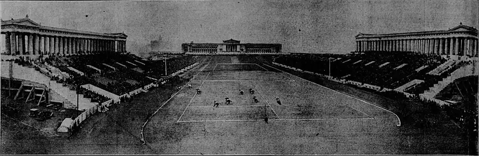 The Canadian professional soccer champion Toronto Scots played St. Louis' Stix, Baer and Fuller team, the U.S. champions, for the North American soccer title in 1933. The Scots won 2–1. This event was one of many Soldier Field sporting events that was tied-into the ongoing Worlds Fair.[1]