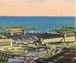 Soldier Field (far left) and the adjacent Century of Progress World's Exposition in 1933