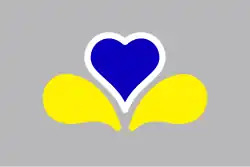 Flag of the Common Community Commission | A white bordered yellow iris on a blue background. | ||