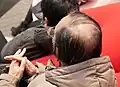 A variation on the traditional topknot and tonsure of samurai in Feudal Japan, today worn by sumo wrestlers. Unlike the samurai tonsure, the top of the head is never shaved for this hairstyle. |