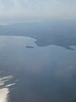 Many of the Wisconsin's islands in Lake Michigan are around the Door Peninsula.[3] Islands in Green Bay include those in and around the Green Bay Breakwater. Washington Island is Wisconsin's largest in Lake Michigan and also has a year-round population of 708 as of the 2010 census. The island has a ferry service and operates Washington Island Airport for air travel.[4] Rock Island is a state park that can only be accessed by ferry from Washington Island. Plum Island is home to a former Coast Guard Life-Saving Station and historic range lights.[5] The islands surrounding the northern part of the peninsula are outcroppings of the Niagara Escarpment.