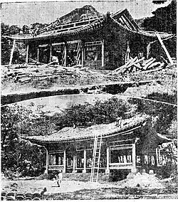 It was rebuilt in 1867. At the time, it was used as a sleeping quarters for palace women.[110] Its foundation was built using timber from the demolished structures of the detached palace Ch'angŭigung.[134] From 1885 onwards, it was used for political meetings and lectures.[110] It was disassembled and moved to Changdeokgung after that palace's 1917 fire.[65][135] Its former site was turned into a Japanese-style garden.[135] |