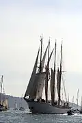1968 | H | 140 ft (43 m) | 3-mast barque | Wood | 9,000 sq ft (840 m2) | 200 tons | Sail with small auxiliary diesel | ||||