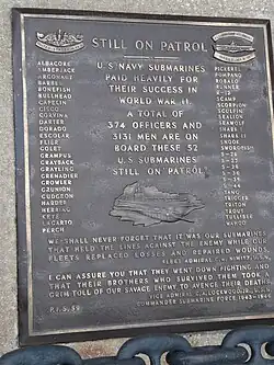 - ^ ″United States Submarine Losses World War II″, Naval History Division, Office of the Chief of Naval Operations, Washington: 1963 (Fifth Printing)