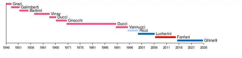 | 6 | Renato Gnocchi | 23 March 1966 | 12 July 1970 | PSI |