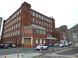 From the Industrial Revolution until the 20th century, Bolton was a major centre of textile manufacture, particularly cotton spinning. During this period, Bolton was dominated by large rectangular brick-built factories, many of which still remain today as warehouses or converted for residential or retail use. In 1929 there were 247 cotton mills in the borough and in 2009 a study revealed that 108 had survived in some form.[1] The others had been totally demolished and their sites used for other purposes.